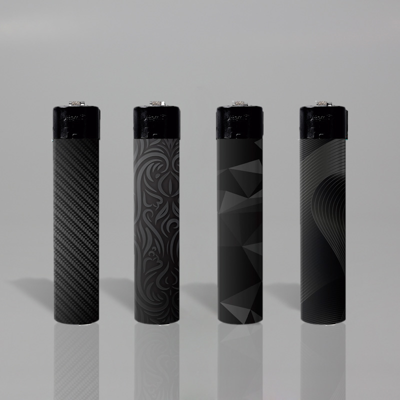 Este pack incluye 24 encendedores con oscuros diseños geométricos.