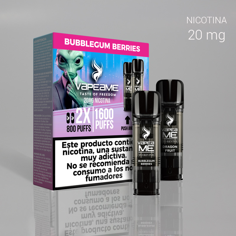 Disfruta de una explosión de sabor con el VAPEAME Set 2 Recargas 800 + 800 Caladas Bubblegum Berries 20 mg. Una mezcla perfecta entre la dulzura nostálgica del chicle y la frescura jugosa de frutas del bosque, ideal para los amantes de los sabores intensos y divertidos. Cada unidad te ofrece 800 caladas con vapor denso, sabor constante y un golpe de nicotina de 20 mg que garantiza satisfacción al instante. Su diseño ergonómico y uso sencillo hacen de VAPEAME Bubblegum Berries la elección perfecta para quienes buscan una experiencia de vapeo cómoda, duradera y llena de personalidad.